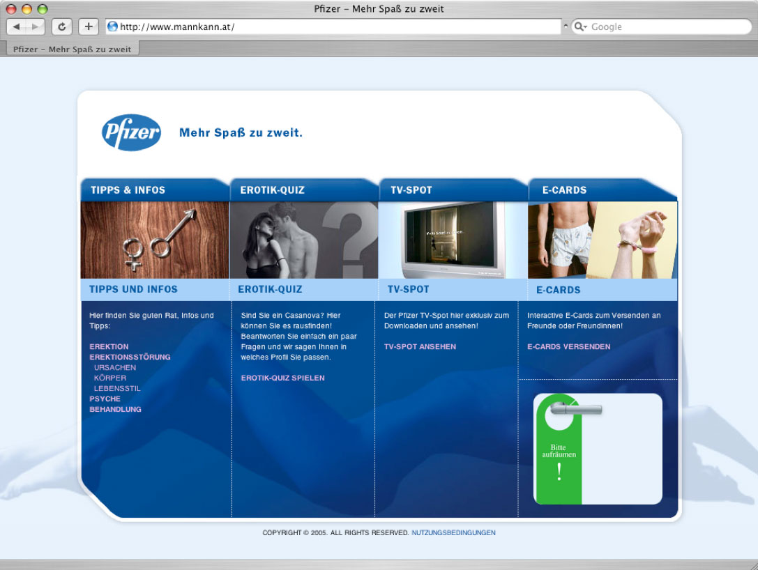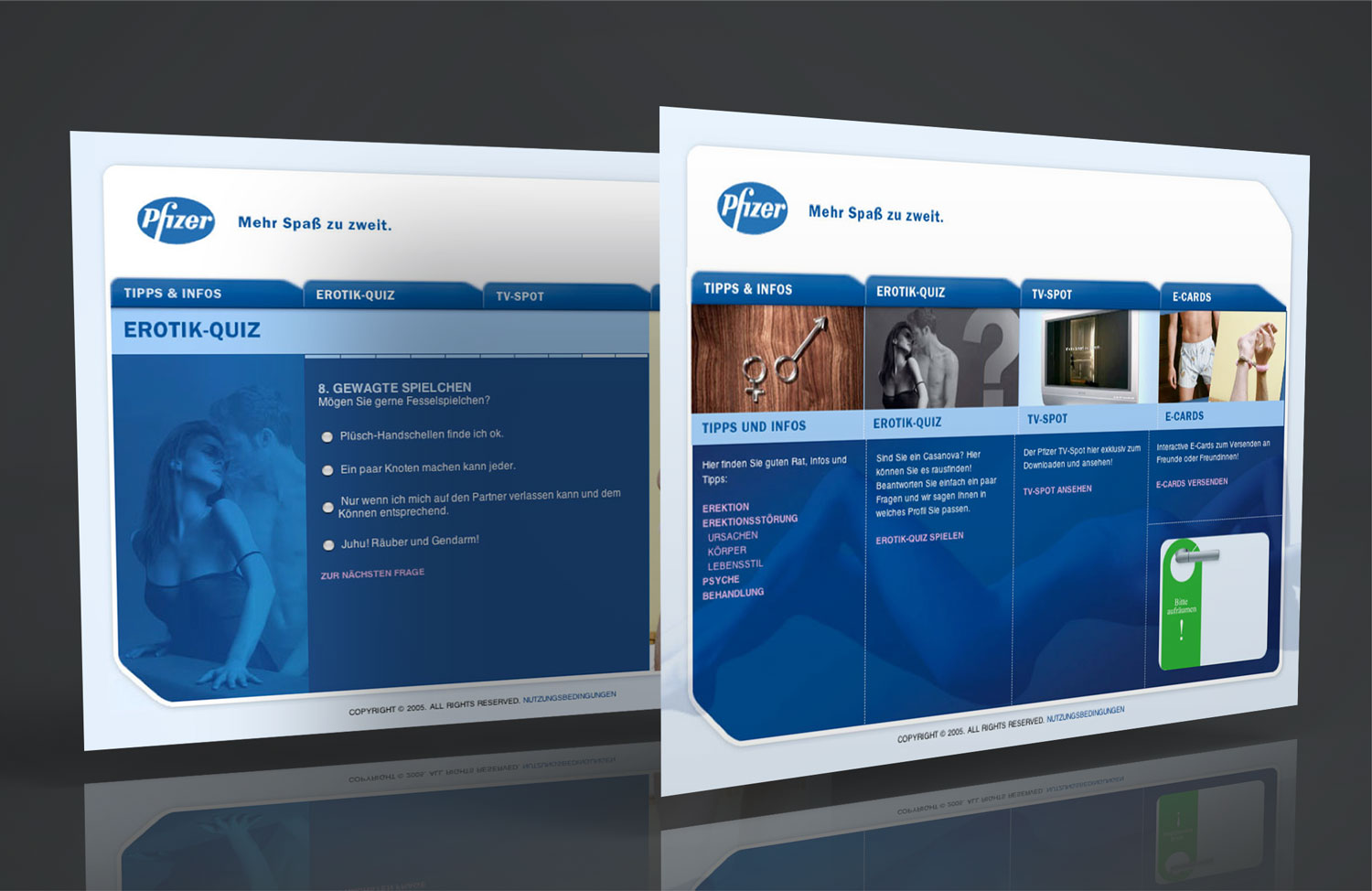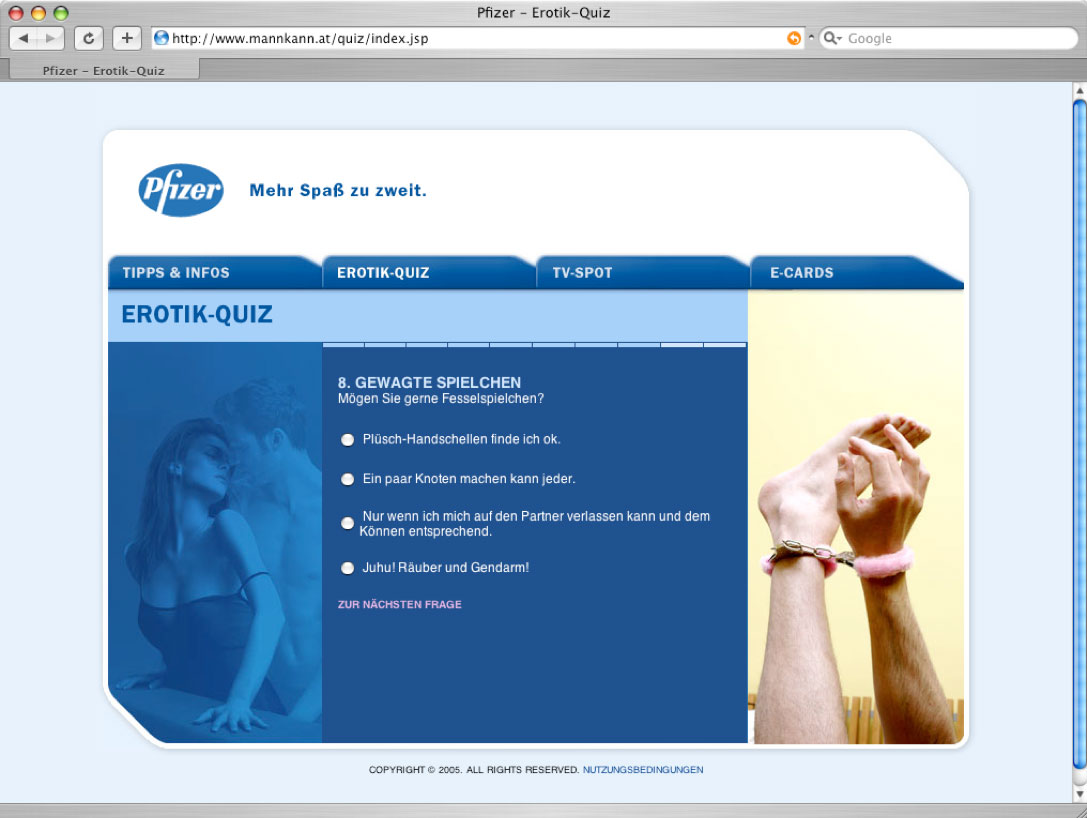 Webdesign and programming for a Pfizer online quiz.